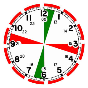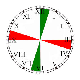 Rode sector (15 + 3 minuten en 45 + 3 minuten): gereserveerd voor noodcommunicatie in morsecode (500 kHz). Tijdens deze periodes mocht alleen een SOS-sein worden uitgezonden of geluisterd naar noodoproepen. Dit moest voorkomen dat zwakke noodsignalen werden overstemd door regulier verkeer.